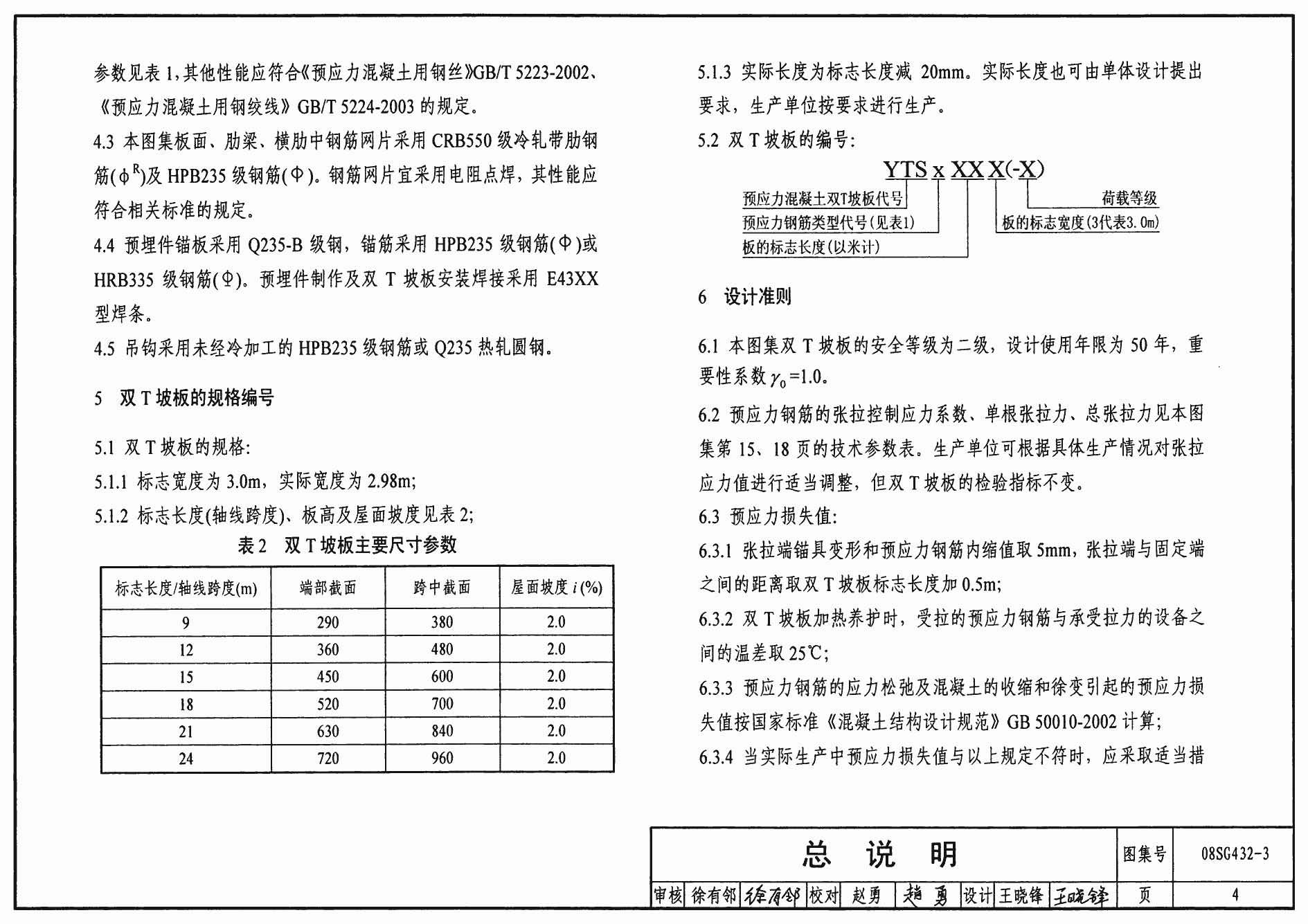 08SG432-3 预应力混凝土双T板(坡板 宽度3.0m)