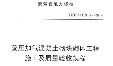 DB34T 766-2007 蒸压加气混凝土砌块砌体工程施工及质量验收规程