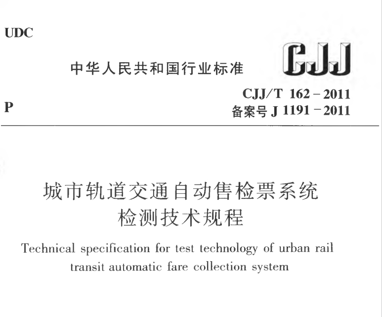 CJJT162-2011 城市轨道交通自动售检票系统检测技术规程