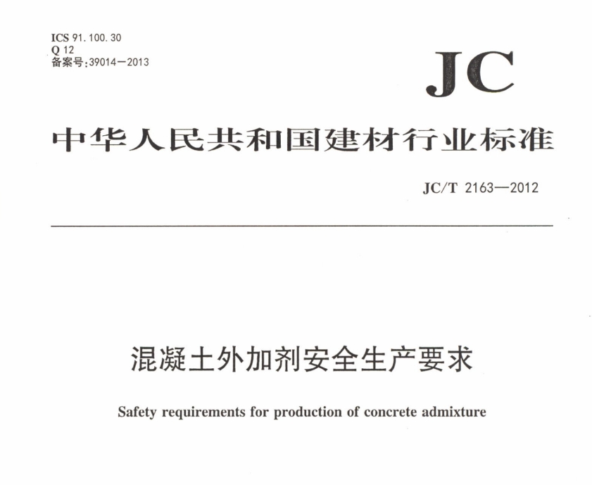 JCT2163-2012 混凝土外加剂安全生产要求