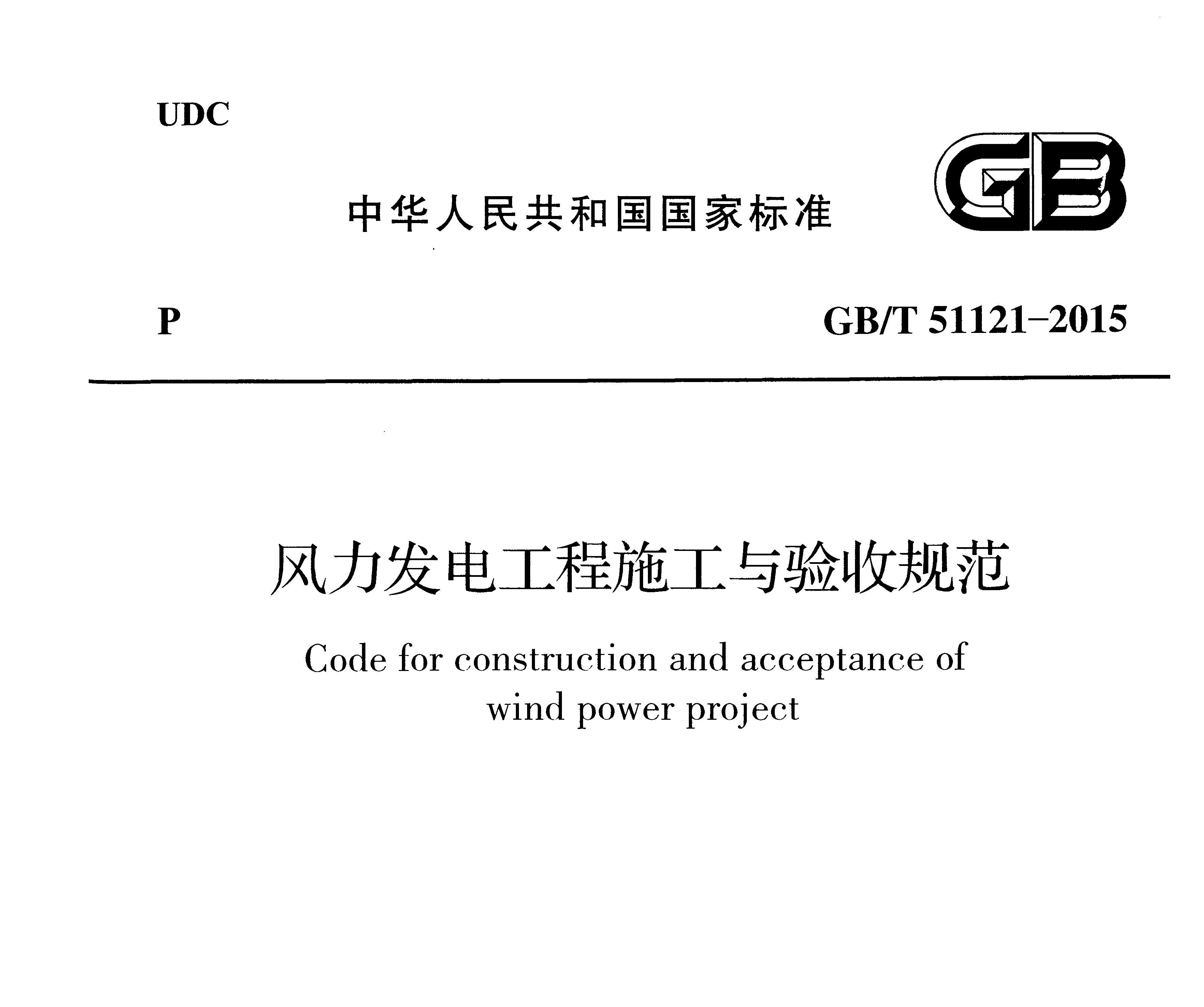 GBT51121-2015 风力发电工程施工与验收规范