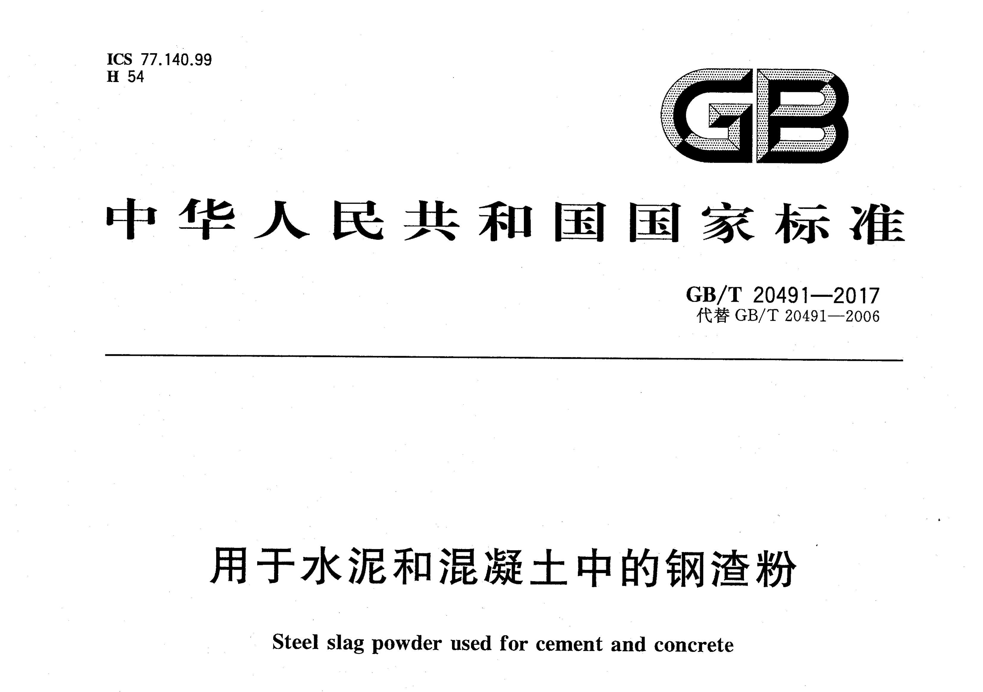 GBT20491-2017 用于水泥和混凝土中的钢渣粉