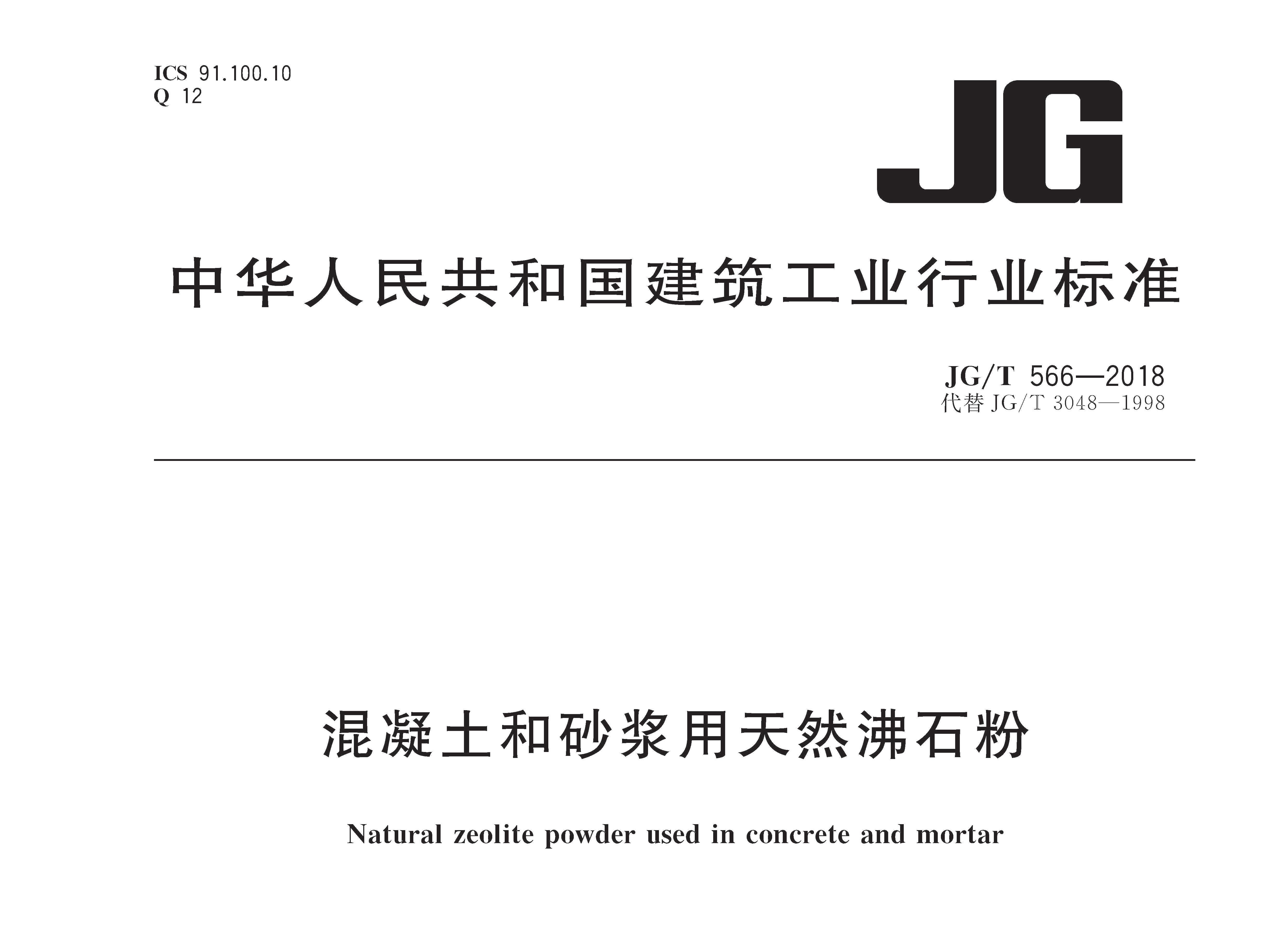 JGT566-2018 混凝土和砂浆用天然沸石粉