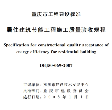《重庆市居住建筑节能工程施工质量验收规程》(DBJ50-69-2007)