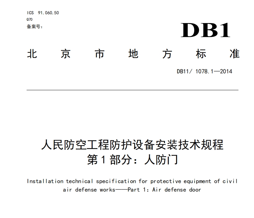 DB11 1078.1-2014 人民防空工程防护设备安装技术规程 第1部分:人防门