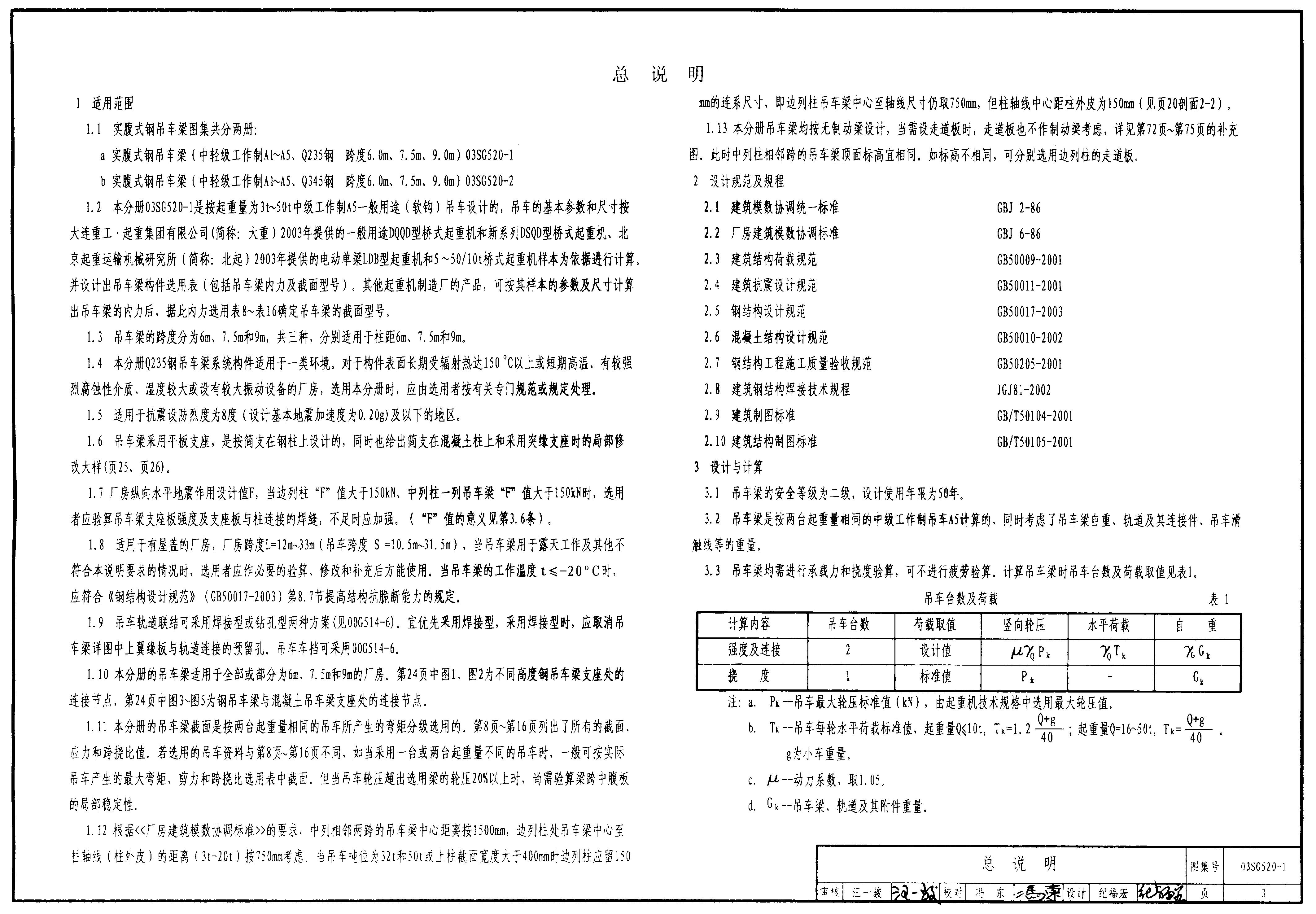 国标:03SG520-1【实腹式钢吊车梁(中轻级工作制 A1~A5 Q235钢 跨度6.0m,7.5m,9.0m)】
