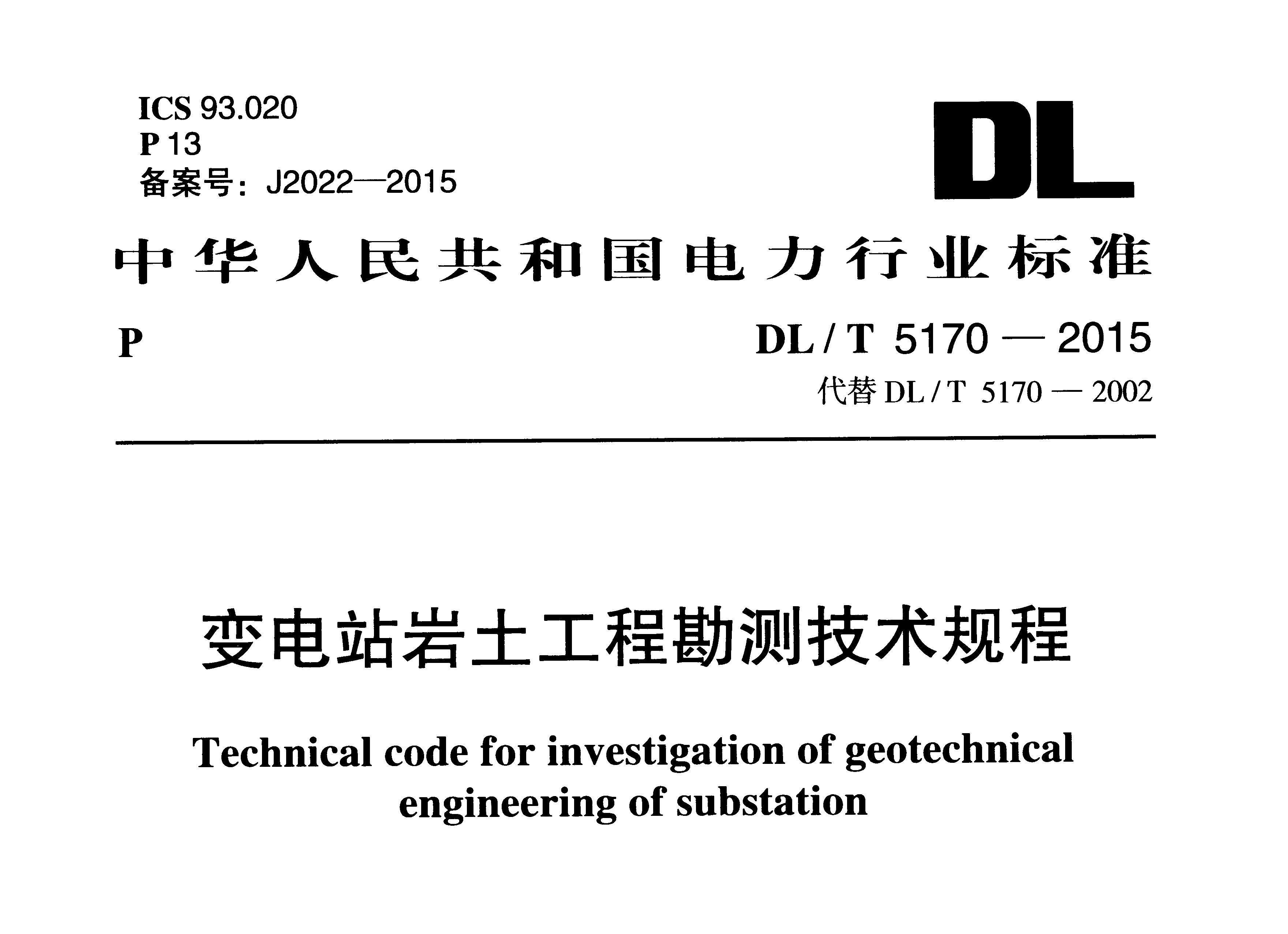 DLT 5170-2015 变电站岩土工程勘测技术规程